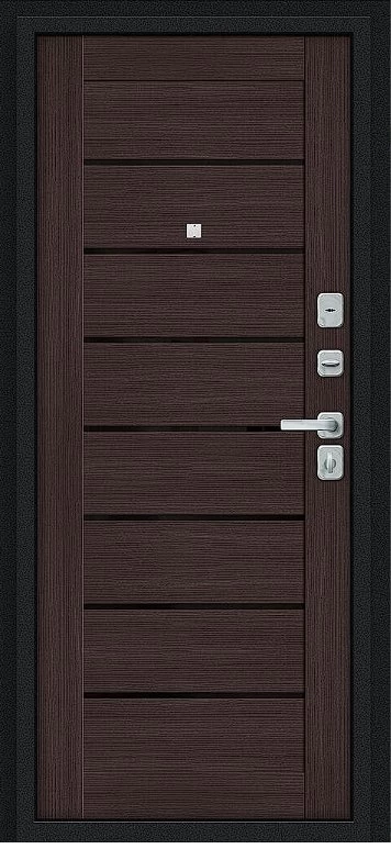 Надежная входная Дверь Браво Техно/BChrome Букле черное/Wenge Melinga премиум класса по цене 36 100 руб. Большая толщина стали защитит от проникновения в ваш дом, квартиру или коттедж. Используется очень качественная фурнитура: замки, цилиндры, ручки, защелки. Покрытие и отделка двери изготовлено под внимательным контролем производителя. Дверь имеет долгий срок службы и гарантию.
